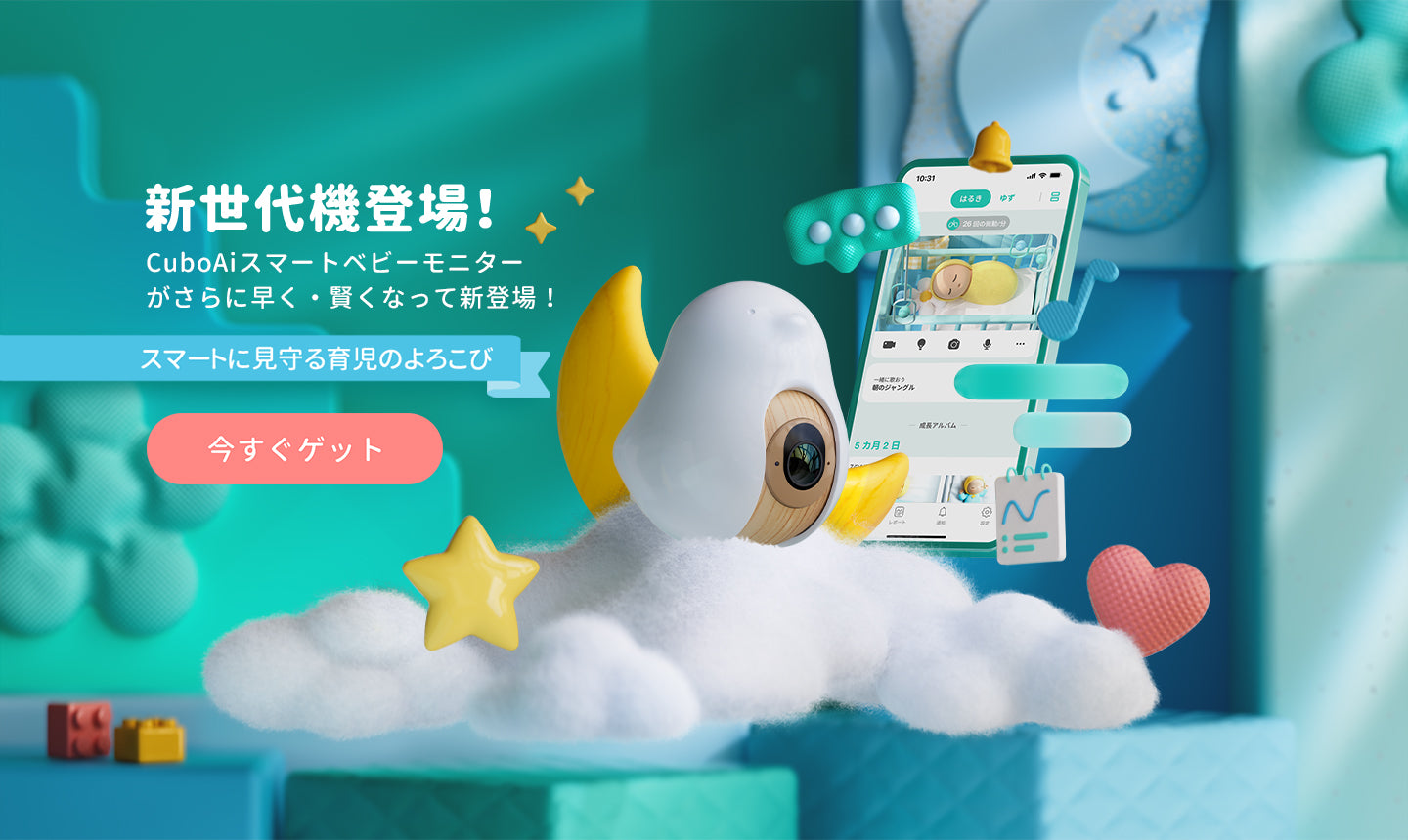 LINE友だち追加でクーポンコードを手に入れ、LINE診断をやってみよう!CuboAi は顔認識カバー防止&寝返りアラート、泣き声感知アラート、睡眠分析などの機能でママの子育てをサポートします