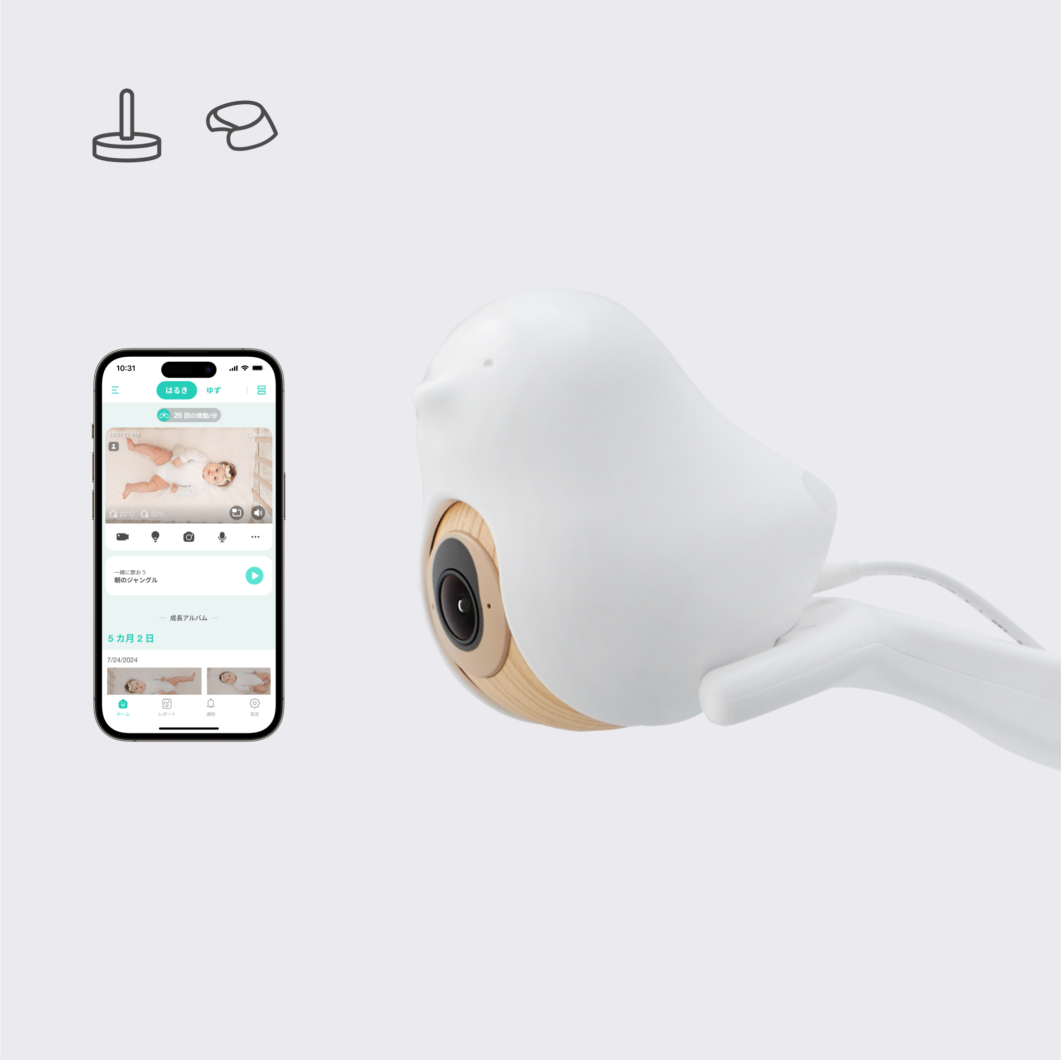 CuboAi スマートベビーモニター(第3世代)は可愛らしい小鳥型の本体にAI技術を搭載した高機能スマートベビーモニターであり、25万人のママパパに支持される子育ての頼れるパートナーです。